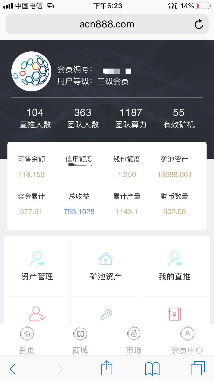 矿池资产:注册实名送600币到矿池,矿池资产以每天千分之二的比例释放到可售余额。释放出来的是可以出售的。但是卖币需要等额的信用额度。