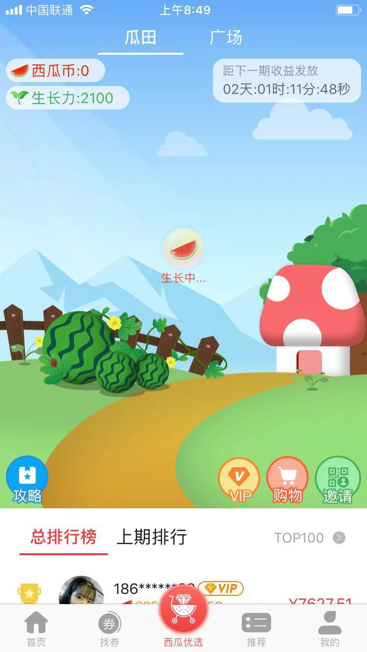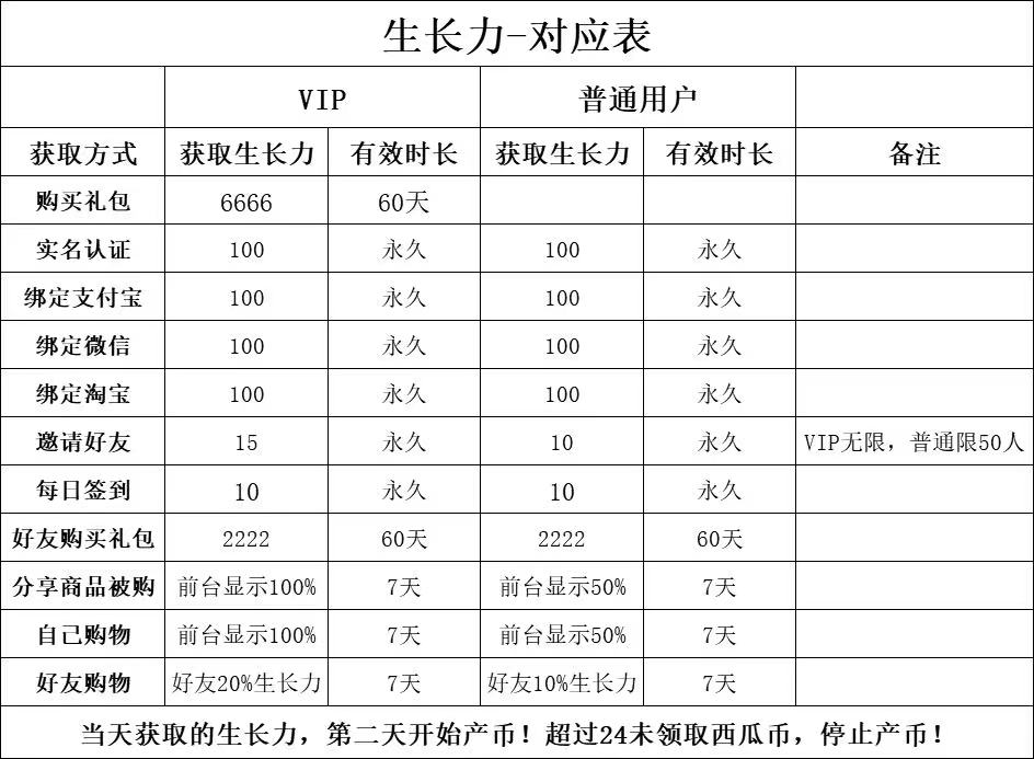 西瓜生活获取生长力的方式有很多种,购买礼包,实名认证,绑定支付宝微信淘宝,签到,自己购物分享购物,当然最主要的还是邀请好友