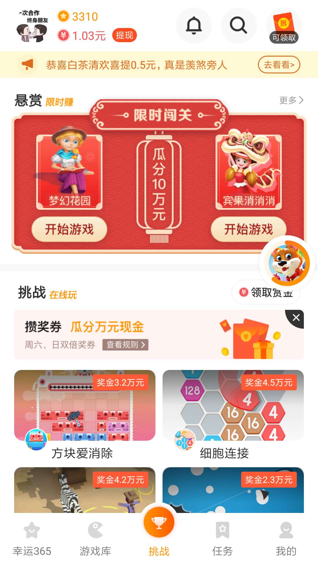 3、0.5元提现是新手提现,5元提现是必须要连续十天超过10分钟小游戏,50元提现才是无门槛