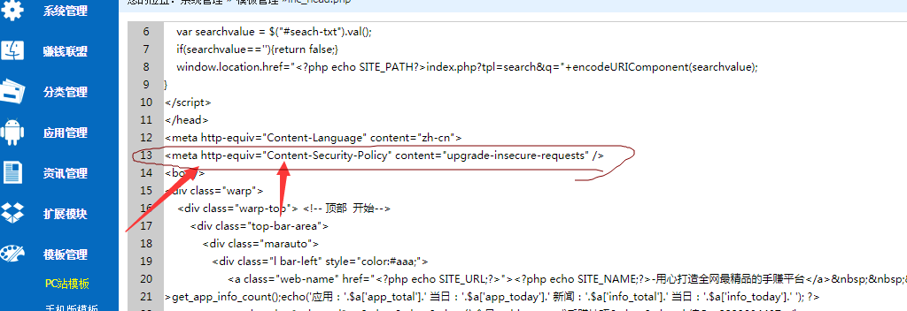 现在做手赚网的很多,很多的里面也有很多用的是appcms,但是很多人套用模板就是因为不会修改,发现用了https以后后台上传图片不可以,前台浏览器上还有黄色的感叹号!那这种情况我们这里处理呢?------前言