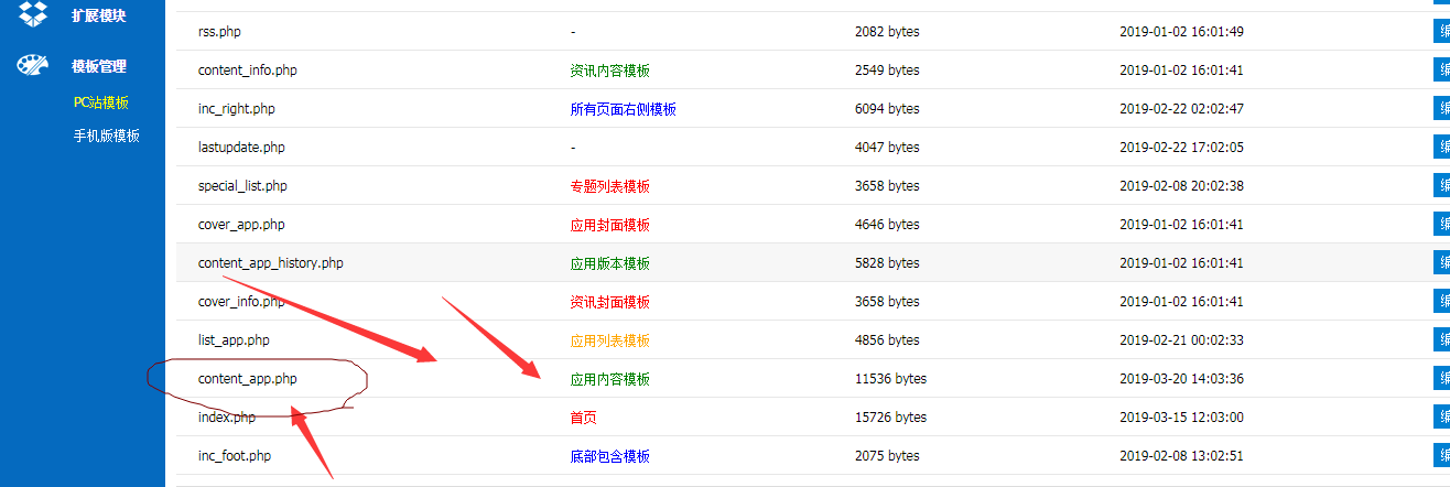 2:可以在pc模板里面看到inc_head.php这个头部模板,我们编辑这个模板。